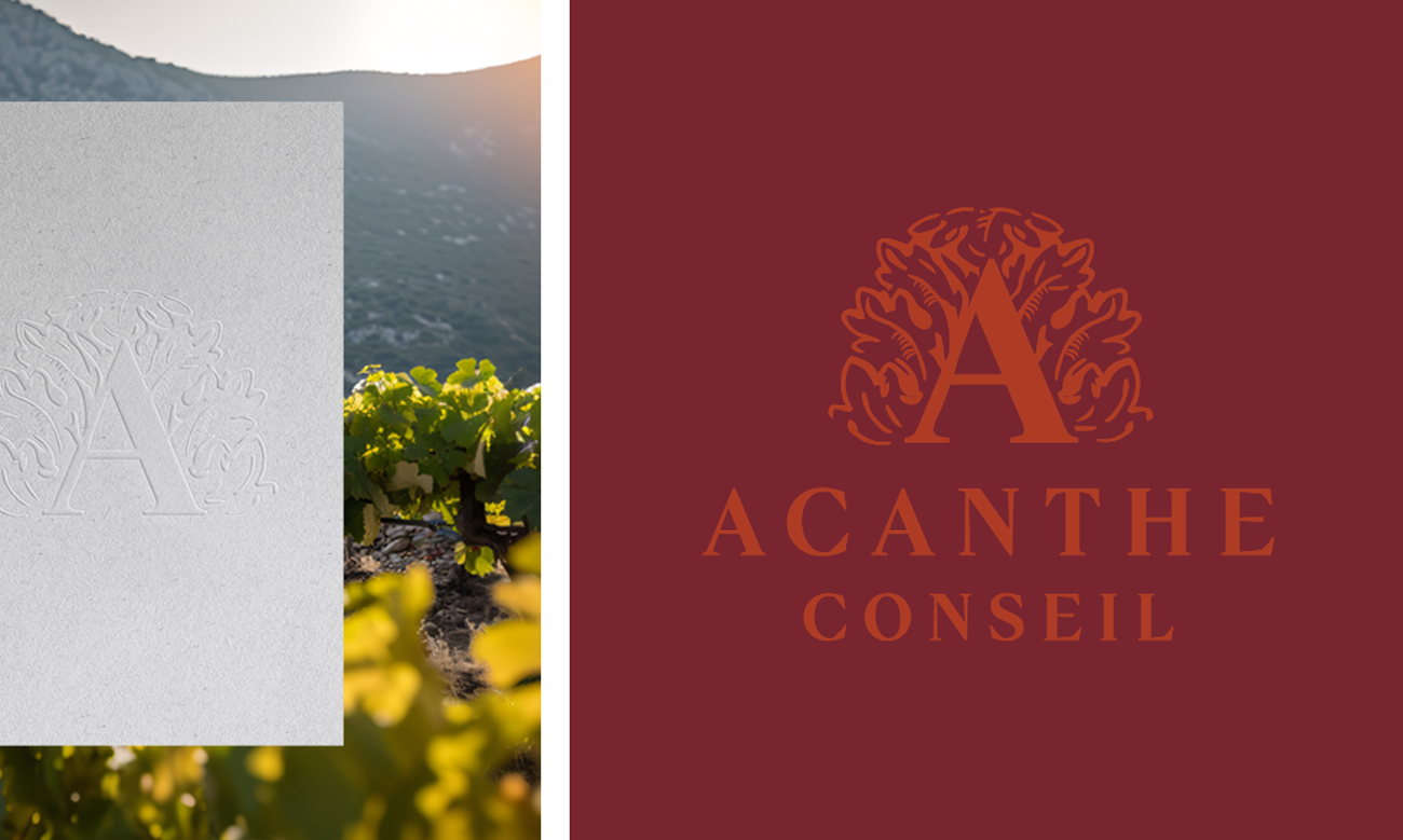 Création d’un logo pour Acanthe, cabinet de conseil spécialisé dans le secteur viticole et l’accompagnement de domaines viticoles à potentiel, sur les marchés français et internationaux. Le design s’inspire de la plante acanthe, symbole de croissance et d’élégance, pour refléter les valeurs de professionnalisme, expertise et rayonnement international de la marque. Un projet de branding graphique pensé pour être clairement identifiable, élégant et adaptable à différents supports de communication.