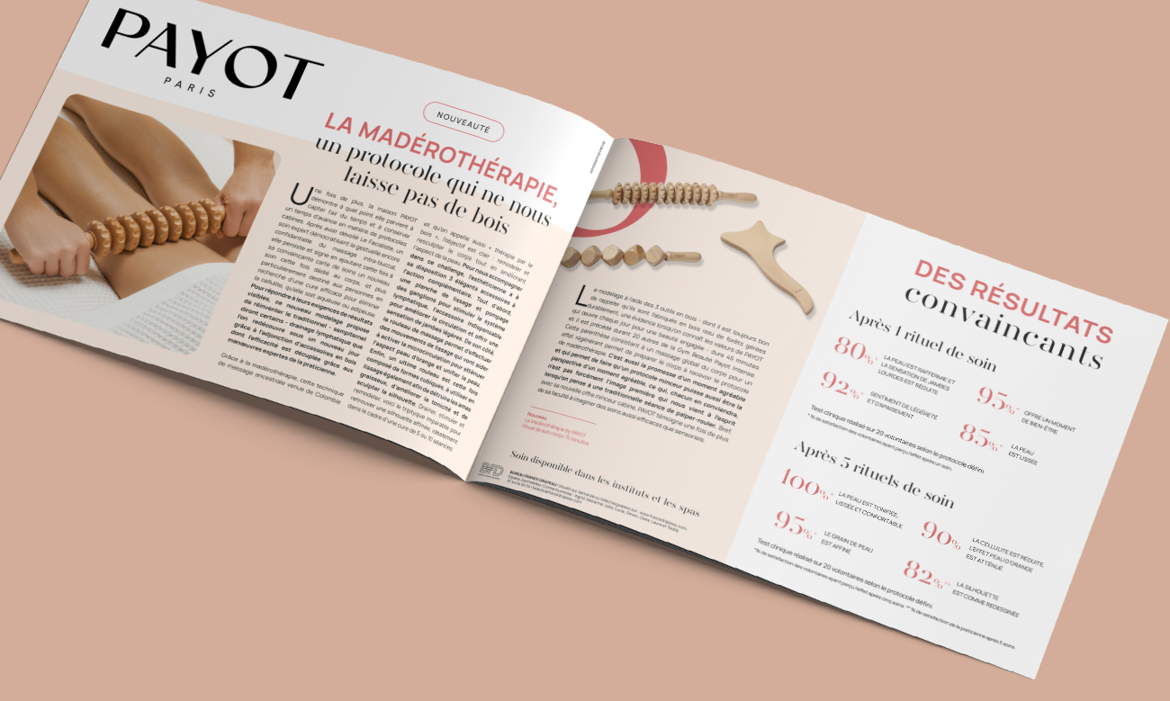 Conception et mise en page de dossiers de presse et communiqués de presse pour la marque Payot, dans le cadre d’une collaboration via l’agence Bureau Franck Drapeau. Un travail de design éditorial pensé pour accompagner les relations presse, valoriser les lancements produits et garantir une lecture claire, structurée et élégante, fidèle à l’identité de la marque. Ce type de missions est régulièrement réalisé pour différentes marques des secteurs cosmétique et bien-être, dans le cadre de collaborations avec des agences de relations presse. Missions similaires réalisées pour des marques telles que Biolane, Paula’s Choice, Unbottled, Calmosine, Alphanova, Mavala…