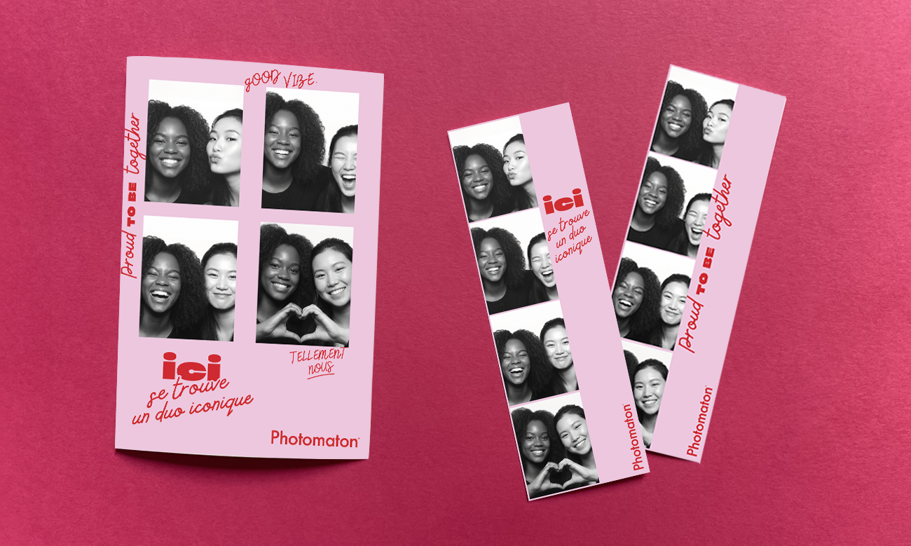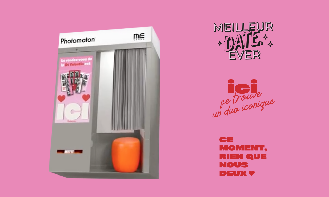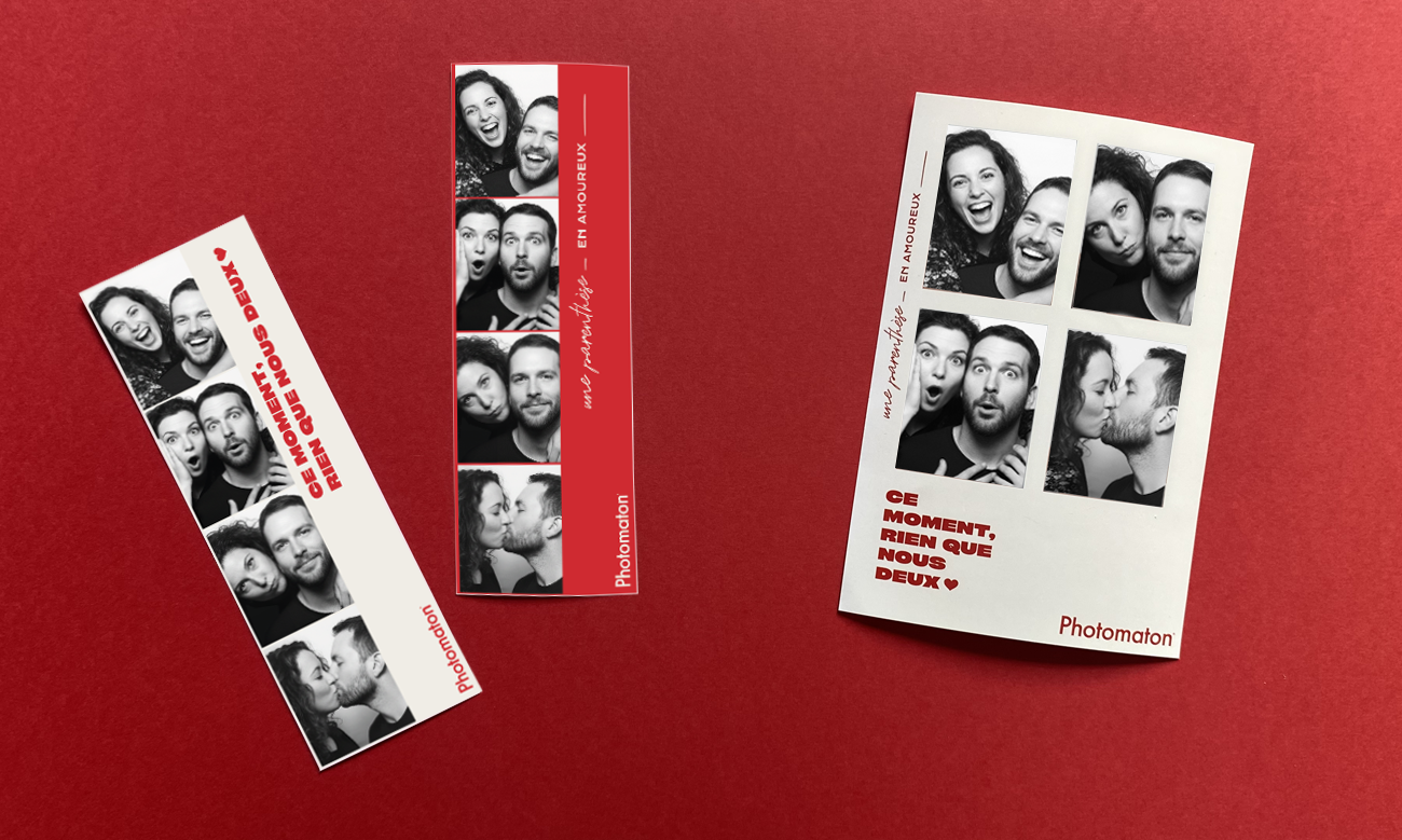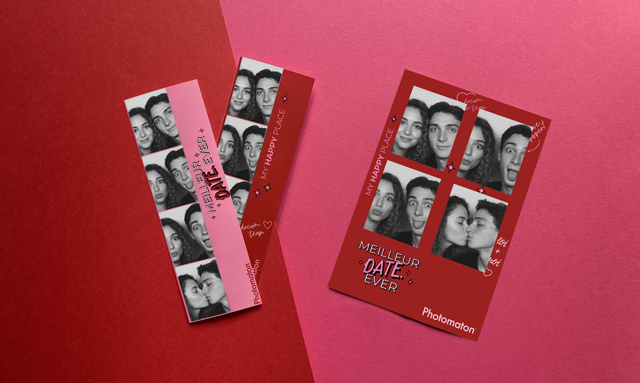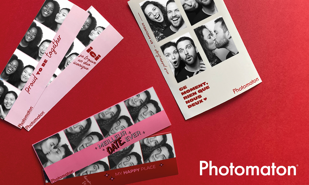 Photomaton® France m’a confié la création des habillages photos et du key visual de son opération événementielle de Saint-Valentin, déployée dans l’ensemble des photomatons en France. Conception de trois univers visuels distincts (Adultes, Ados, Friends), pensés pour s’adapter aux bornes photo et séduire des publics variés, tout en garantissant une cohérence graphique et un rendu fidèle à la prise de vue. Développement du KV et déclinaison des visuels pour différents usages : slideshow en cabine, template photo et communication sur les réseaux sociaux. Direction artistique et création graphique des habillages, avec optimisation pour un affichage harmonieux en situation réelle.